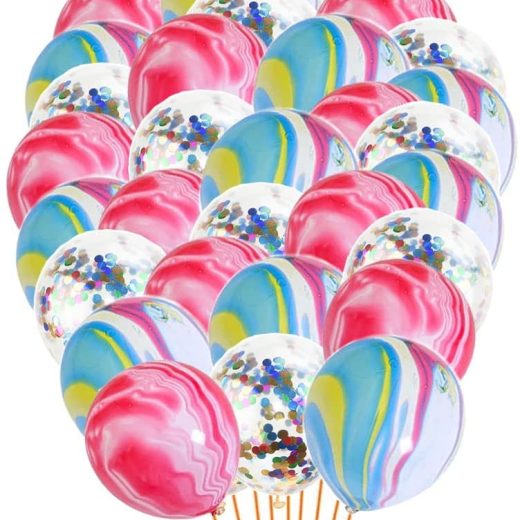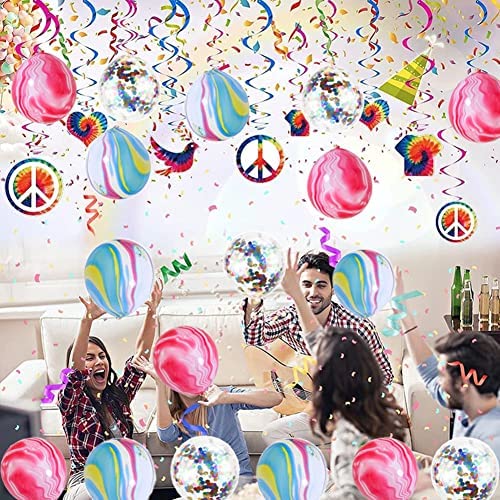 MEMOVAN 30pcs Tie Dye Balloons 12 inch, Marble Agate Latex Balloons, Swirl Balloons, Colorful Rainbow Balloons for Tie Dye Art Classic 60s 70s Hippie Theme Carnival Baby Shower Birthday Party Supplies