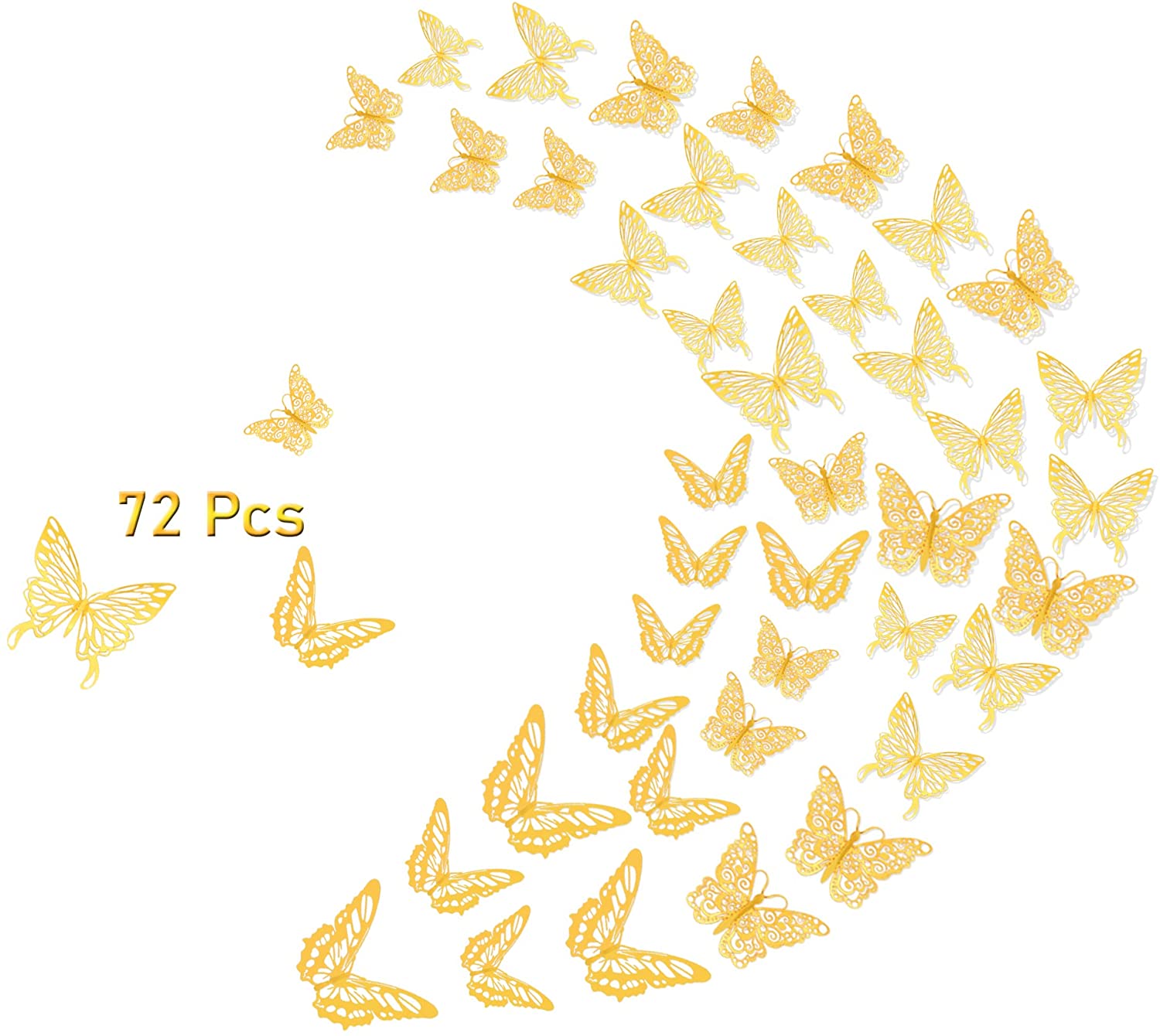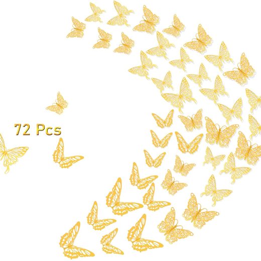 Menoeceus 3D Gold Butterfly Wall Decals, 72Pcs Gold Room Decor, Butterfly Party Decorations, Wall Stickers for Kids Boys Girls Living Room, Cake