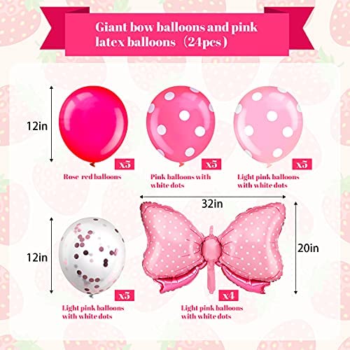 Meooeck 24 Pieces Bow Foil Balloons Jumbo Bow Balloon Polka Dots Balloons Sequined Balloons for Wedding Bridal Shower, Gender Reveal Balloons, Party Decorations (Pink, Light Pink)