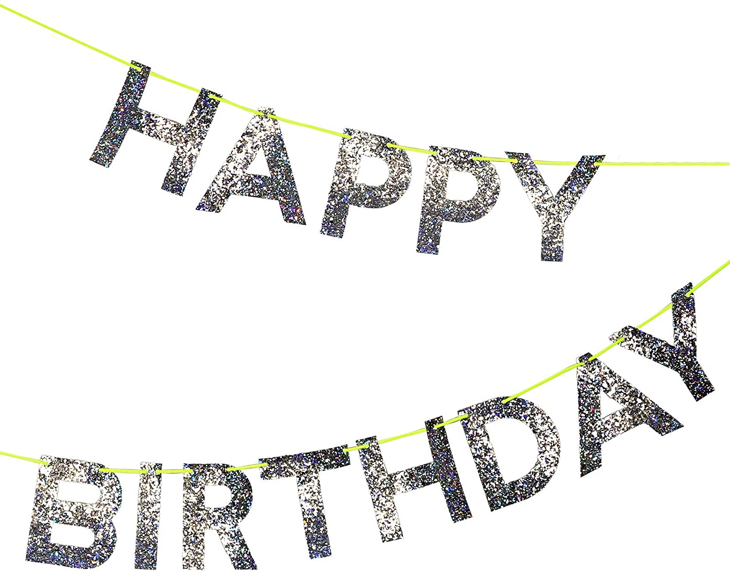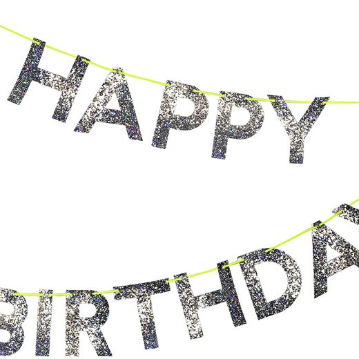 SPARKLY -The Meri Meri Birthday Garland, Happy Birthday Garland is consist of 13 letter pennants in a chunky holographic silver glitter, make it lo…