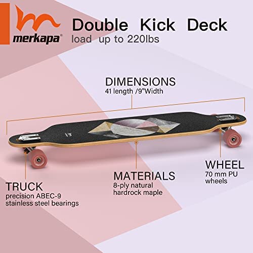 VINTAGE LONGBOARD. 41-Inch artisan longboard made from 8-ply natural hardrock maple, designed for a vintage look