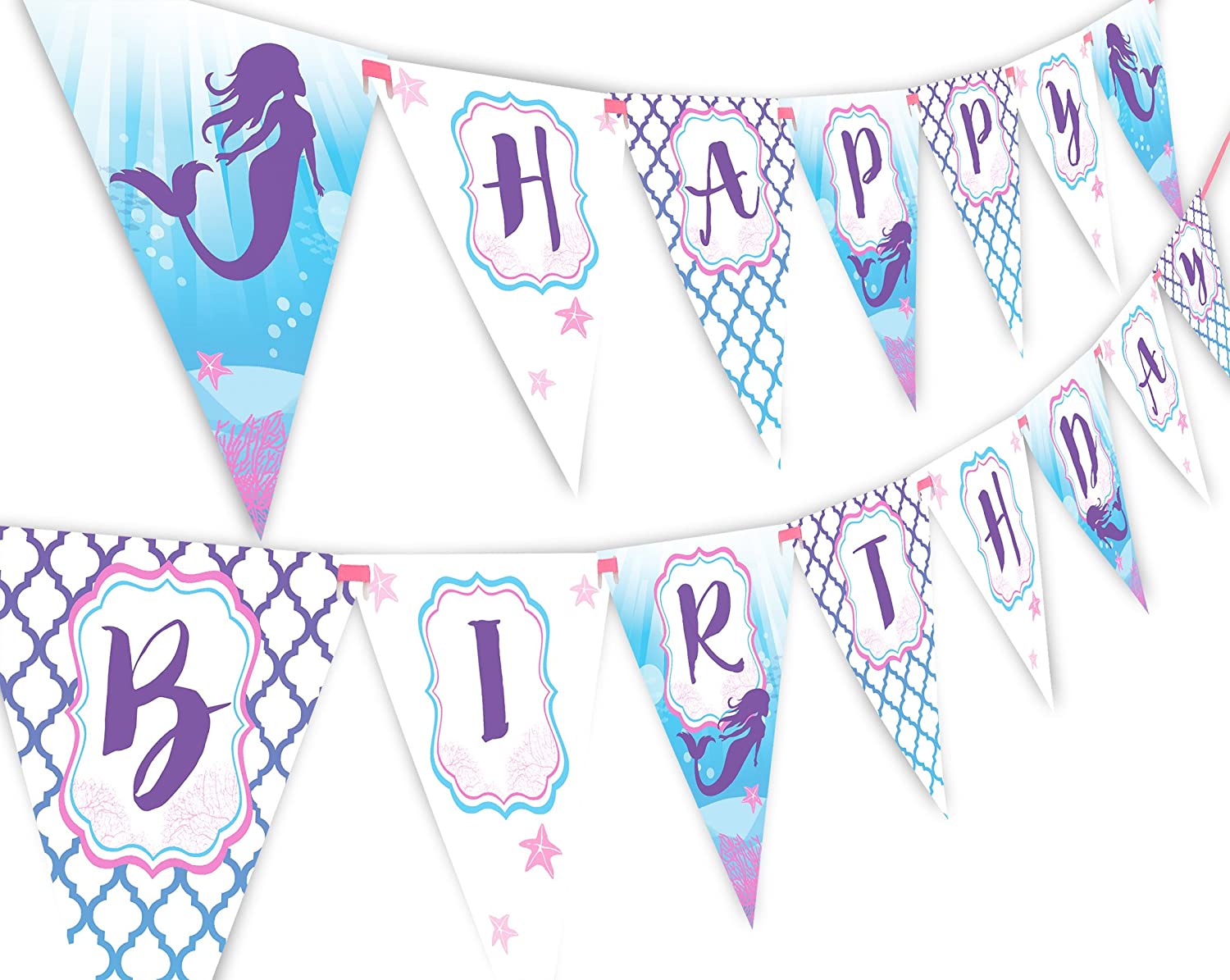 Mermaid Happy Birthday Banner Pennant – Under the Sea Banner – Purple