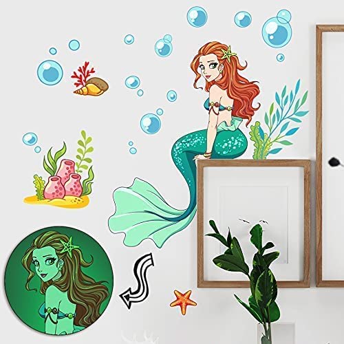 Mermaid Wall Decal, Glow in the Dark Wall Stickers, Mermaid Gifts for Girls, Bubble Seaweed Light Switch Decor, Mermaid Wall Stickers, Mermaid Decal for Wall, Luminous Mermaid Decor for Girls Bedroom Room Baby Nursery Bathroom Classroom Decorations