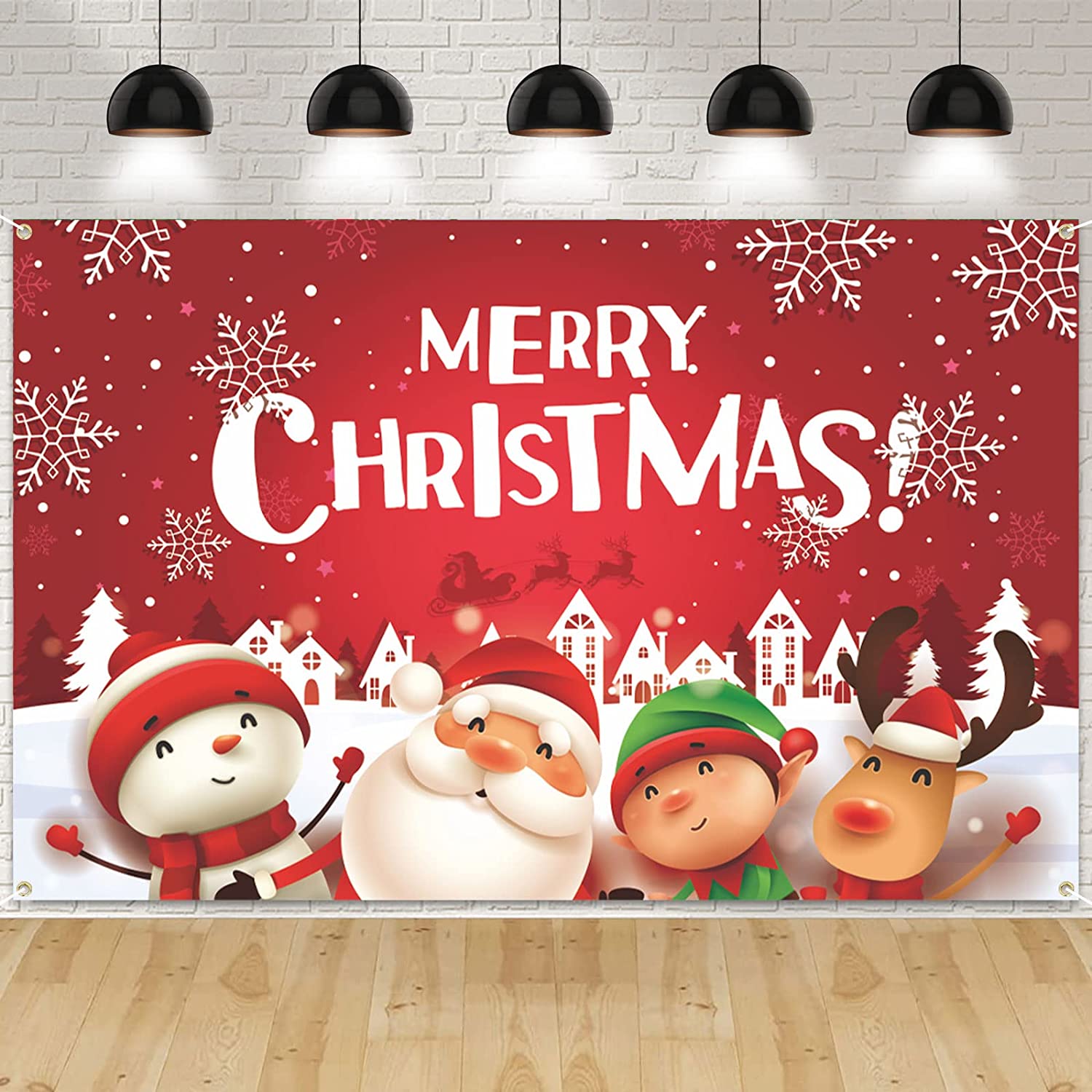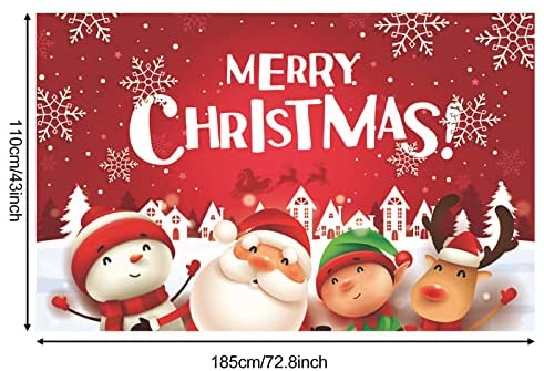 [Large Happy Birthday Banner] The size of Merry Christmas backdrop banner is 185 x 110 cm/ 72.8 x 43.3 inch, which is large enough for christmas party decorations and photography at your party,adding an extra touch to your christmas holiday party. [Durable Material]The Red Merry Christmas sign backdrop banner was made from polyester fabrics with vibrant printing;Its easy to clean,durable and reusable. [Easy to assemble]This banner comes with a 20 feet/ 6 m string, easy to hang through the copper grommet;Suitable for indoor or outdoor wall, playground,yard etc. [Fun element] Elegant design with Merry Christmas, Santa Claus and Snowman christmas sign elements, Merry Christmas party kit can be applied as family photo props; You can take beautiful and memorable photos with this decoration; Suitable for many fun occasions like christmas theme party, holiday party, car decorations, wall decorations, and so on. Satisfying After-SalesAfter buying our Christmas banner decorations, we will provide you with perfect after-sales service. If you have any questions about our products, please contact us, our customer service is willing for you to resolve issue.