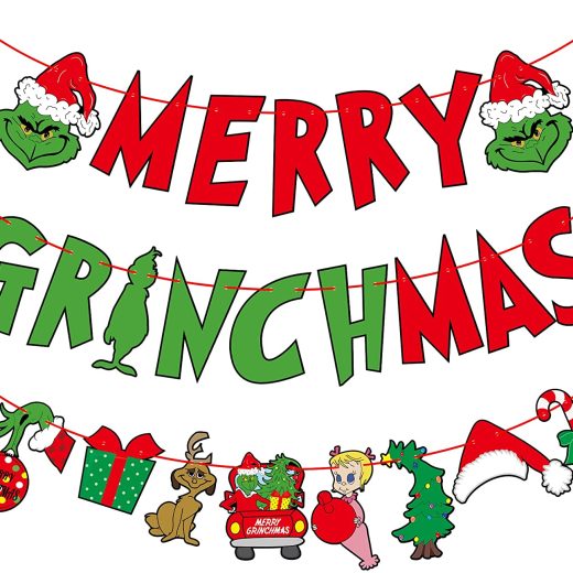 Merry Grinchmas Banner Christmas Grinch Decorations Merry Grinchmas Decorations Grinch Theme Christmas Party Banner Decor for Christmas Home Office…