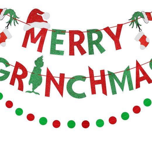 What you will get: 1pcs red&green glitter merry grinchmas banner and 1pcs red&green Grinch circle dots garland, perfect for Grinch Christmas decora…