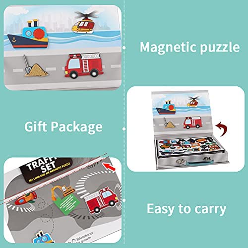 Meryi Magnetic Traffic Set Jigsaw Puzzle Games for Boys and Girls – Play Set with Storage Case Early Educational Toys (Traffic Set)