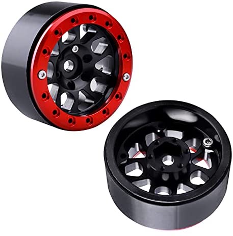 Metal 1.9 Beadlock Wheels Rims 1/10 RC Crawler Upgrades for Traxxas TRX-4 Axial SCX10 II 90046 SCX10 III AXI03007 Redcat Gen 8 (4-Pack) (Red + Blac…