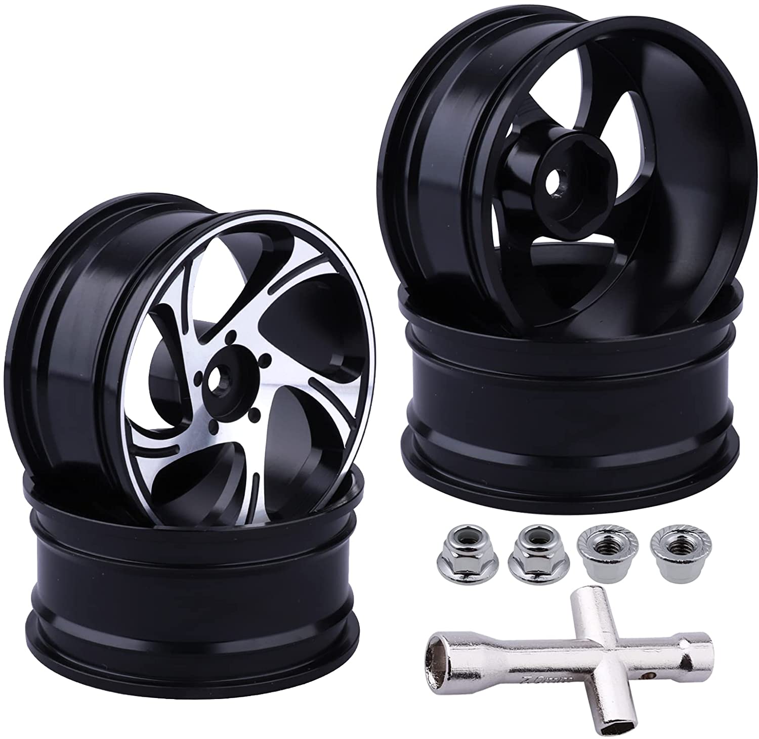 Metal Aluminum RC Car Wheels Rims for 1/10 Scale On Road Touring Drift Car Compatible with Flying Fish 94123/Pro Redcat Lightning EPX Tamiya TT02 TT01 HPI RS4 Kyosho Sakura D4/C5/XIS, Set of 4