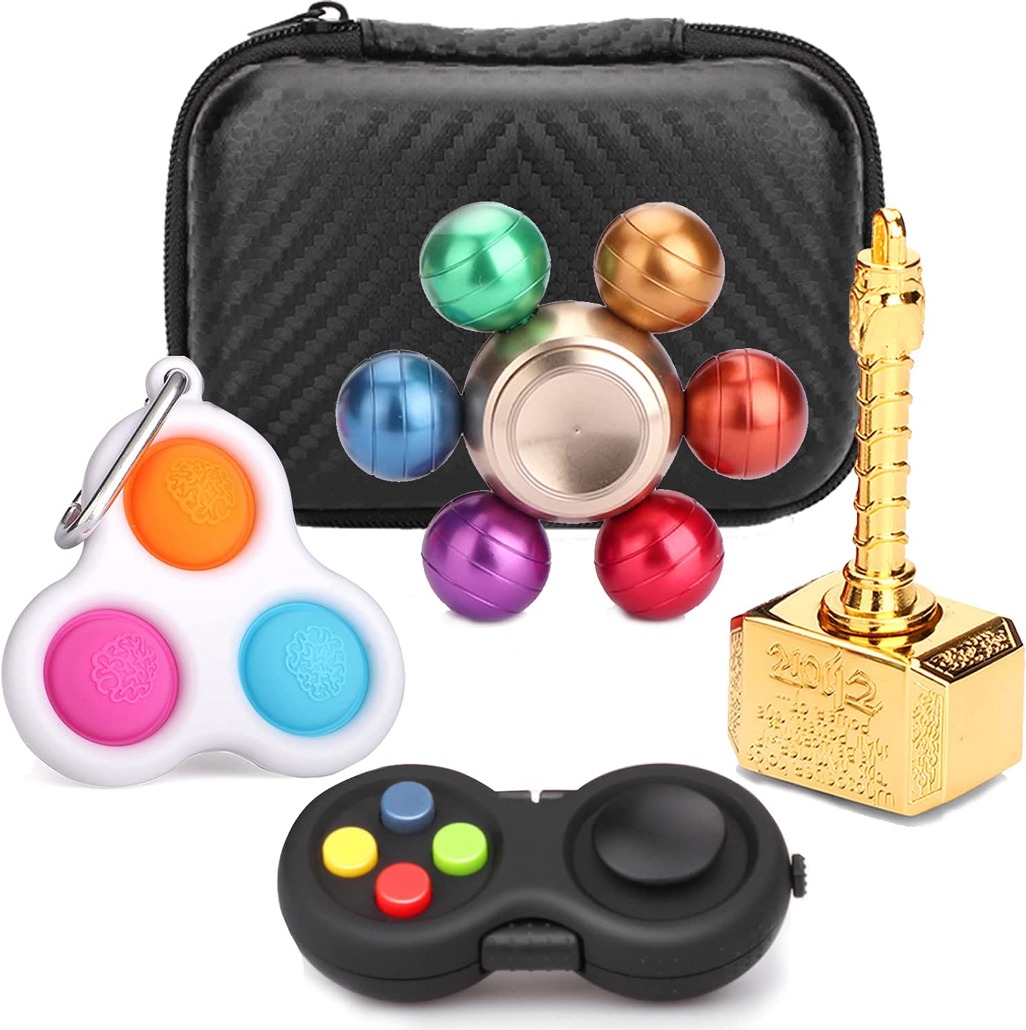GREAT GIFT – There is plenty of choice in terms of item & colour. Great for kids birthday party favor, school classroom rewards, treasure box prizes. Anzmtosn supply top quality product to our customers. If you received incomplete package or need any help, please feel free to contact us by message. We will offer proper solution for you at once. Anzmtosn Fidget Toys Set not just for fidgeting,but also will bring you tons of fun. Cool gifts for any festival gifts such as christmas,halloween,birthday , etc. Best party favors slience gift for kids or adults. High premium quality with fiber case packed let everyone love these gifts. Gift Package: 1*Thors Hammer Fidget Spinner(Metal) 1*Multi Function Fidget Pad 1*Popper Pad; 1* Dragon Fidget Ball Spinner(Metal) 1*Carbon Fiber Case