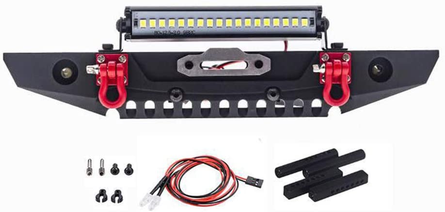 Metal Front Bumper with LED Light Bar for 1/10 RC Crawler Car Traxxas TRX-4 TRX4 Axial Scx10 90046 D90