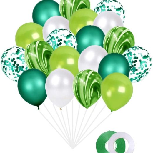 Metallic Green Agate Latex Balloons Confetti Balloons White Green Party Set(60pcs)12Inch Latex Balloons Birthday Jungle Baby Shower Wedding Office Party Colorful Balloons