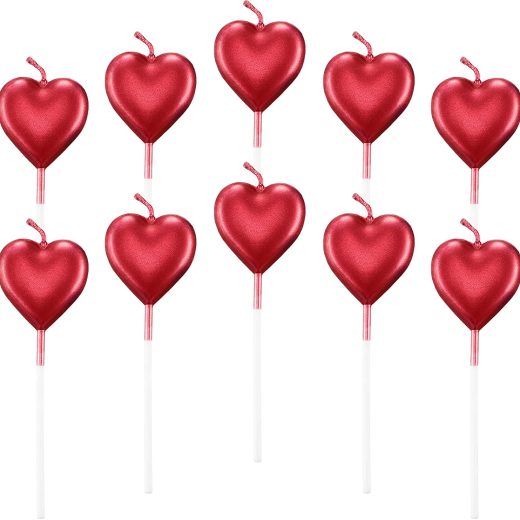 Heart candles set: you will receive 10 pieces heart shaped candles, adequate quantity, proper size and heart pattern for your convenience to decorate your lovely cakes, your guests will be impressed by special cakes Novel heart design: party candles have heart shaped and tinted with red metallic coating, add a sense of elegant and delicate, suitable for decorating your cakes, and with plastic holders convenient to use, would not break beautiful surface of your cakes Wide application: especially suitable for many important occasions, such as birthday, wedding, Valentine’s Day, anniversary or corporate events, metallic candles will add more brilliance to your cakes Safety material: heart cake candles are made of quality wax material, no odor and non-toxic, safe for your use, last for a long time with bright colors, bring you bright and warm candlelight to your party Appropriate size: total length of each heart shape candle is approx. 3.27 inches/ 8.3 cm, heart width is 1.06 inches/ 2.7 cm, candle height is 1.06 inches/ 2.7 cm, sufficient time to burn, you can use them with confidence