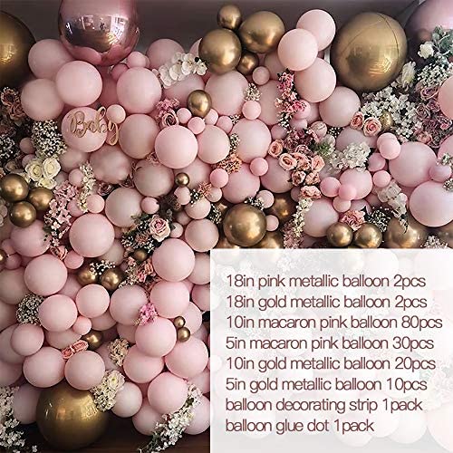 Metallic Pink Balloons and Gold Balloons 146pcs, Macaron Pink Balloon Kit with Gold and Pink Metallic Balloons and Accessories for Engagement Wedding Anniversary Birthday Party Bridal and Baby Shower Decoration Backdrop