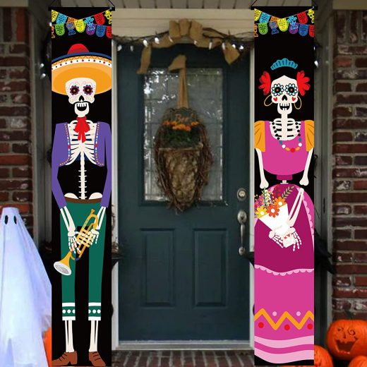 Mexican Days of the Dead Party Decoration Supplies, Cinco De Mayo Door Porch Banner Sign for Day The Dead Party Supply Photo Booth Decorations, Dia De Muertos Halloween Decorations Indoor Outdoor