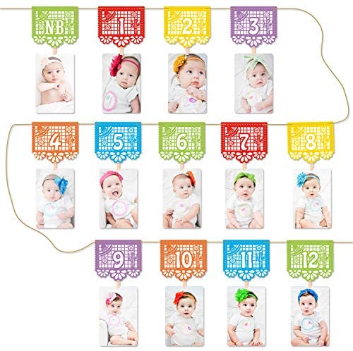 This NB to 12-month fiesta photo banner is made of high-quality cardstock. It comes pre-strung so all you have to do is clip your photos to it, the…