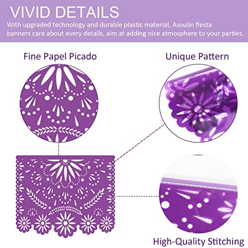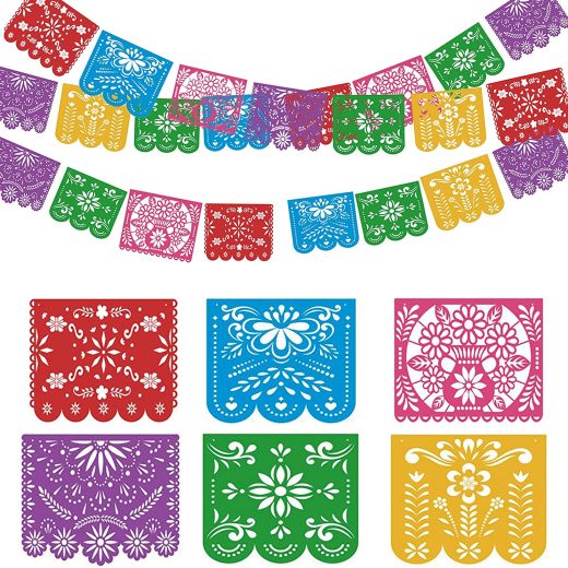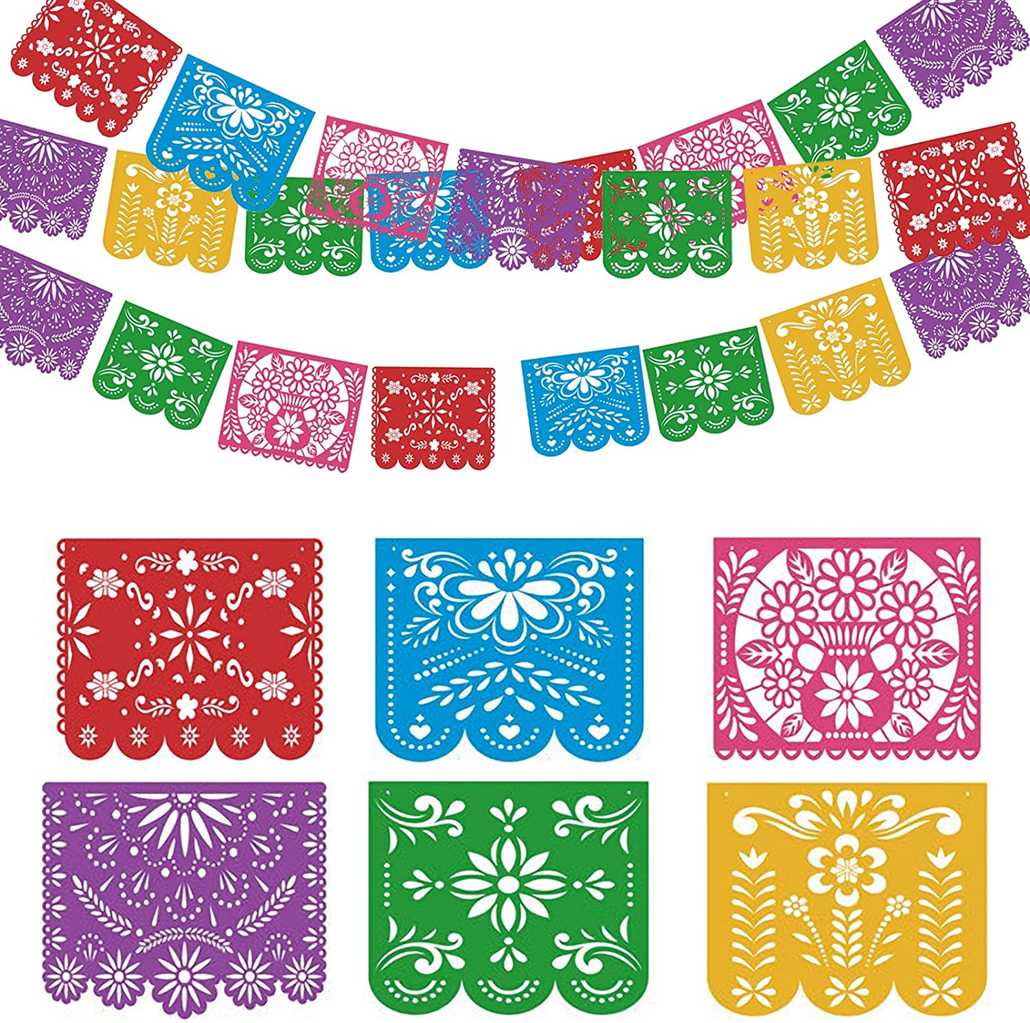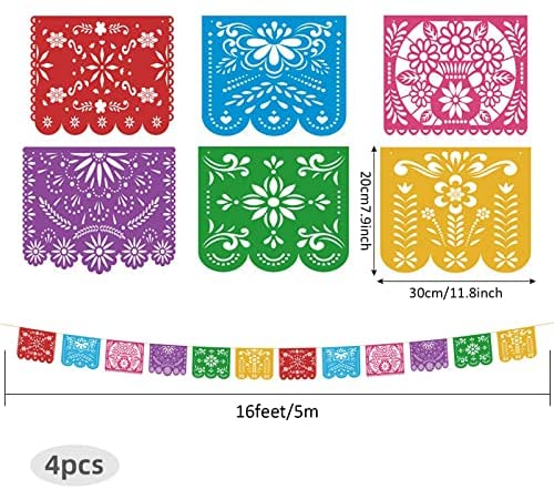Mexican Party Banners, Plastic Papel Picado Banner, Fiesta Mexicana Party Decorations Hanging Banners Flags for Cino de Mayo, Dia De Los Muertos and Day of The Dead, 4 Packs 65 Feet