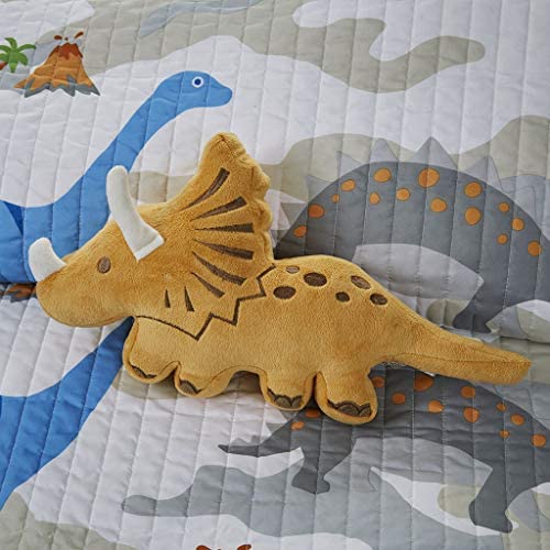 Mi Zone Kids Little Foot Twin Bedding Sets Boys Quilt Set – Grey, Blue, Orange , Dinosaur u2013 3 Piece Kids Quilt For Boys u2013 Cotton Filling Ultra Soft Microfiber Quilt Sets Coverlet