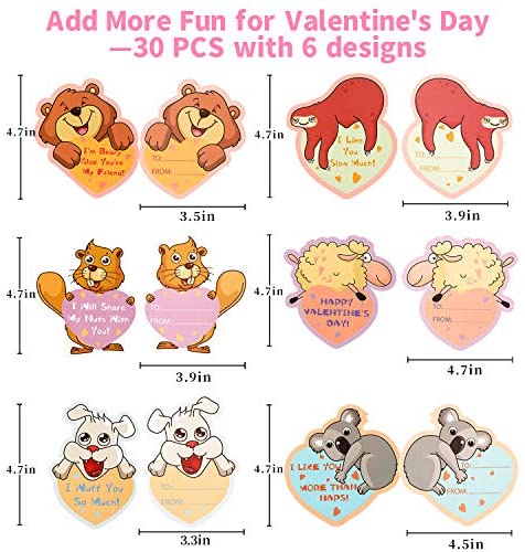 30 Cute Valentines Day CardsThe package of kids valentines day decorations comes with 6 styles of animal-themed Valentine cards, 5 for each style, …