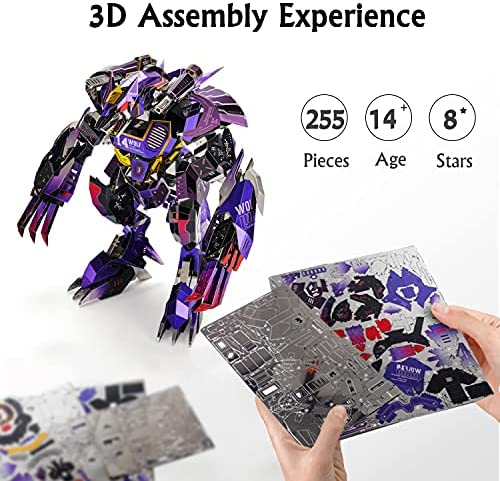 Clear Image InstructionThe Wolf is an unique design released from Microworld in May, 2021. One step by step image manual help, easy to follow. Every piece of puzzle is numbered to help you complete the assembly. No Glue Required 5 pieces metal sheets, totally 255 pcs metal jigsaw puzzle. No glue or solder needed, easy to assemble. The parts can be easily clipped from the metal sheet,and every pieces fit together precisely. Please kindly note a Microworld professional nose pliers tool is needed for the assembling. Wonderful DIY ExperienceAmazing details helps adults develop patience and practical skills, bringing you a wonderful DIY experience from building model. It will give you a great sense of accomplishment once finished. Creative GiftBuild in amazing premium craftsmanship and exquisite details of this wolf model puzzle, let the 3D metal model kits not easy get to deform or fade. Perfect for display, home decor, collection, or gift to kids, friends and parents. Difficult Puzzle for ChallengerThe degree of difficulty is 8 stars, totally 10 stars. Need to be patience and carefully as it may cost about 14 hours to building, recommended for 14+ years old. Good for a puzzler who love to challenge, relax mind, and reduce stress from a busy day and get away from day-to-day. . Worry-Free After Sale Service All of our products come with a worry-free 12-month warranty, if you have any problems (Include puzzle pieces missing or receive damaged), please feel free to contact Microworld at any time, our customer support team is standing by to offer you a pleasure shopping experience .