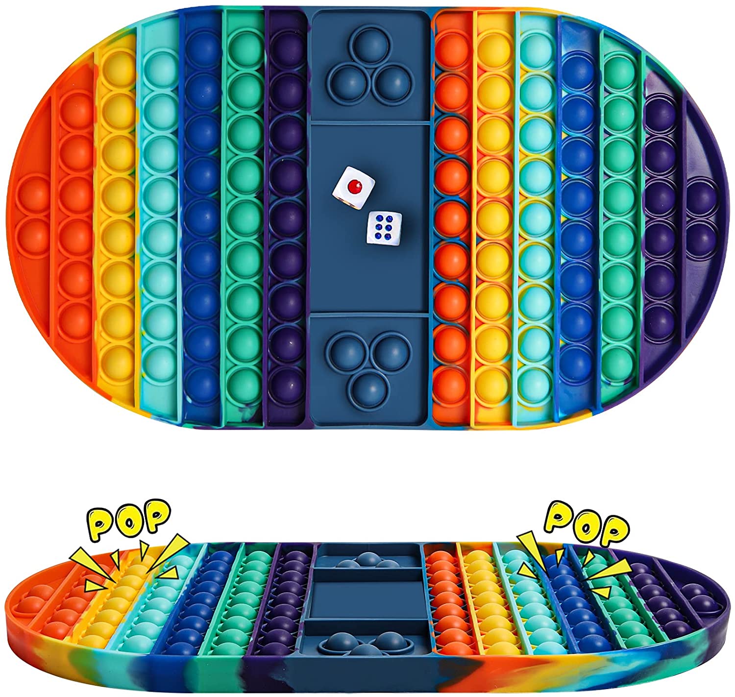MILESTAR Big Pop Bubble Game Fidget Toys Set, Silicone Sensory Rainbow Chess Board, Interactive Jumbo Stress Relief Fidget Pop Game Gift for Kids and Adults