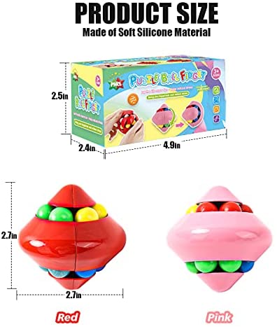MILESTAR Magic Cube Block Sensory Puzzle Toys Fidget Cube Decompression Fidget Toys Relieve Stress, Rotating Magic Bean Toys Puzzle Game, Puzzle Balls for Kids and Adults(Red, Pink)