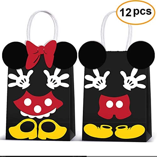 Min Mouse Party Supplies Bags -Micky Minie Paper Treat Candy Gift Bags for Kids Birthday Micky Minie Party Supplies -12 Piece