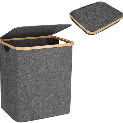 PREMIUM MATERIAL AND STYLISH:Made of high-quality high-density Oxford cloth and carbonized bamboo,The bamboo laundry basket frame is not easy to break, and becomes smooth after carbonization treatment, which will not cause damage to your hands during use time,eco-friendly and non-toxic bamboo frame make this basket stylish from others Collapsible Laundry Hamper: The laundry hamper has 4 special support bars to keep the hamper standing on its own,Dont worry about collapse or distortion,It can be folded in seconds and stored away to saving home space when you finished washing clothes 60L High Capacity & Lightweight:The hamper measures 60L large storage capacity for familys dirty clothes and toys. very lightweight. You can tote it to laundromat or up and down stairs with bamboo handle easily !And the dirty things do not get into the basket easily with the cover. Practical Value: Not just be a cloth laundry hamper, its also a basket/ bin with lid for toys, books, lines, groceries etc, to keep the bathroom, bedroom, living room clean and tidy Lidded and Portable:The neat lid design prevents the spread of odors and keeping your loved cats can naps on it without tearing it apart. Lightweight basket with cutout handle can withstand at least 22 lbs. You can tote to laundromat easily Note: There will be slight wrinkles when the product is received. This is normal, and the wrinkles will slowly disappear when you open it.
