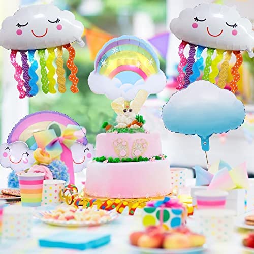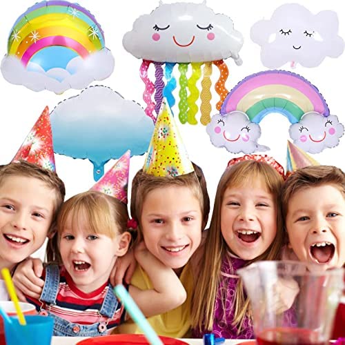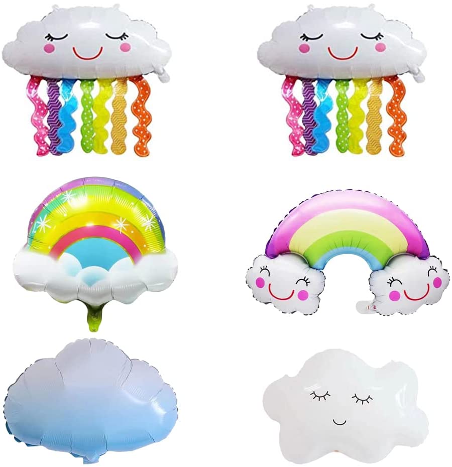 MINGYOUSHI 6 Pcs New Large Size Rainbow Balloons Birthday Party Colorful Decorations Supplies Included Rainbow Foil Balloons, Cloud Balloons, Rainbow Cloud Foil Mylar Balloons, Smiling Face Balloons