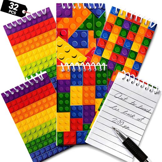 Mini Building Block Notebooks (Bulk of 32) Spiral Notepads In Assorted Brick Styles, In Kids Pocket Size, For Birthday Party Favors, Goodie Bag Stuffers, Children Classroom Rewards, By Bedwina