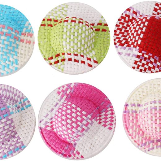 Mini size doll straw hats for crafts. Total 6 colors for these straws hats. – Red, blue, purple, pink, green and rose. Each color for 2 pcs. Small size straw hats – 50 mm x 50 mm x 10 mm Only used for doll diy decorations, DIY crafts kits straw hats. Perfect mini straw hats for crafts.