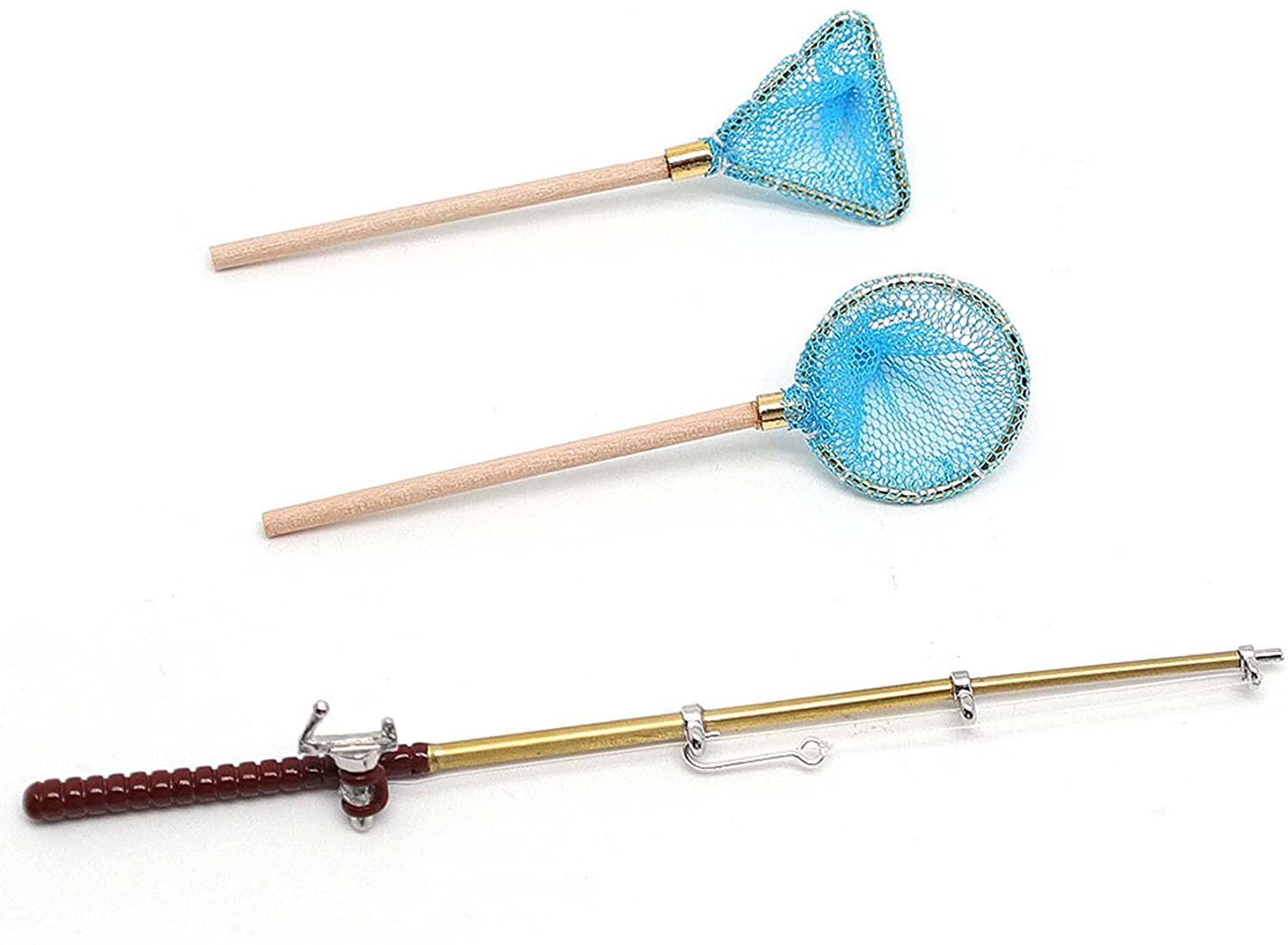 Mini Fishing Rod Net Tools Accessories for 1/6 1/12 Dollhouse Toys 1:10 RC Rock Crawler Axial SCX10 90046 Wraith Yeti TF2 D90 D110 Traxxas TRX-4 Decoration (Blue)
