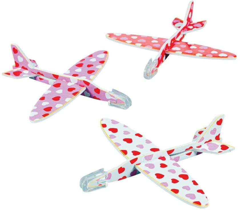 Mini Heart Print Gliders – Bulk Set of 48 – Valentines Day Party Favor Toys