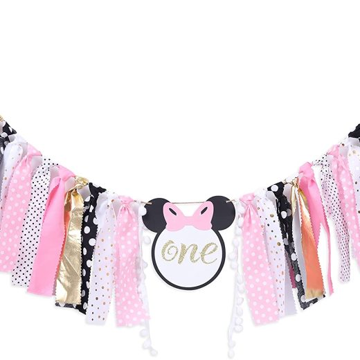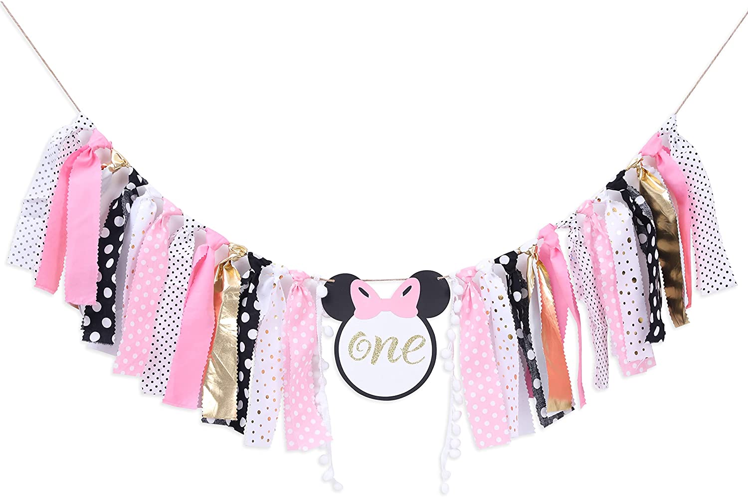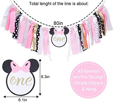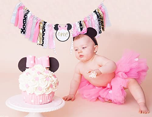 Mini Mouse Highchair Banner for 1st Birthday – Pink and Gold Glitter One High Chair Banner, Baby Mouse Birthday Party Supplies, 1st Birthday Decorations Girl, Cake Smash Photo Props