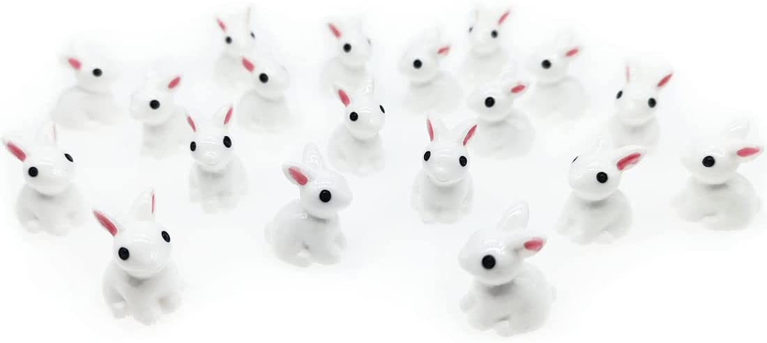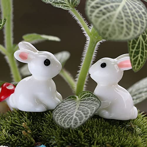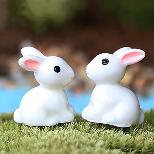 Mini White Rabbit Character Toy Cake Toppers 30pcs Miniature Rabbit Figurines Moss Landscape DIY Terrarium Crafts Ornament