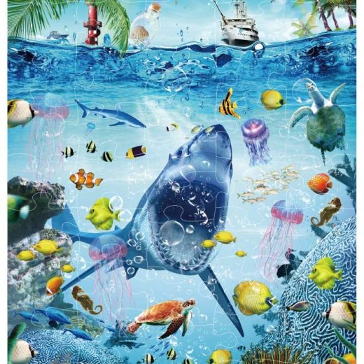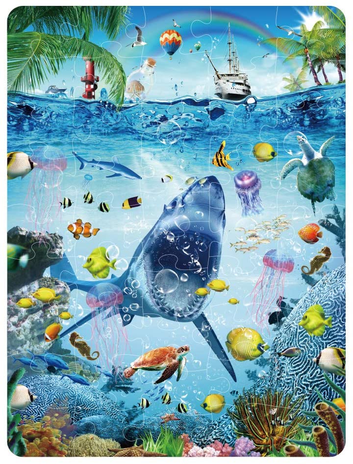 BACK IS AN INTRODUCTION OF MARINE LIFE:It can be said a double sided puzzle,children can learn about marine life while doing puzzles.It brings joy to children and helps them learn cognitively.It must be a good educational tool. PROMOTES HAND-EYE COORDINATION: Our kids Underwater Shark puzzle is designed to help children develop strong problem solving skills, assisting them in the development of hand-eye coordination. GREAT GIFT FOR KIDS 3 TO 8: This Underwater Shark Floor Puzzle makes an ideal gift for kids ages 3 to 8 years. HIGH QUALITY:The surface cuts 30° to protect the babys fingers.Easy to clean surface 48 Pieces Packaged in a box.provide you with after-sales protection,Feel free to contact us 100% HAPPINESS GUARANTEE: We design every toy to nurture minds and hearts.It will be an interesting companion for children to grow up.