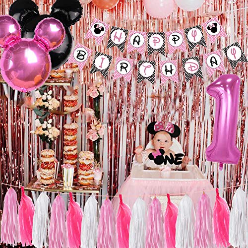 Minnie 1st Birthday Party Supplies Decorations, Minnie Onederful Backdrop, Minnie Happy Birthday Banner Mouse One Balloons, Minnie First Birthday Cake Cupcake Topper, Minnie Welcome Sign Door Hanger