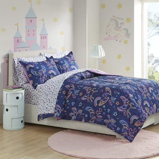Be the first to review “Mizone Kids Leah Bed in a Bag Comforter Set Rainbow Pegasus in Space Fantasy Room Décor, All Season, Hypoallergenic, Cozy Cover with Printed Sheet, Matching Sham, Twin, Blue 5 Piece” Cancel reply