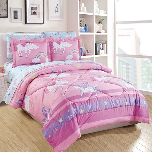 Mk Home Full Size Comforter Set for Girls Unicorn Blue Pink Purple Yellow White New