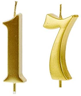 MMJJ Gold 17th Birthday Candles, Number 17 Cake Topper for Birthday Decorations