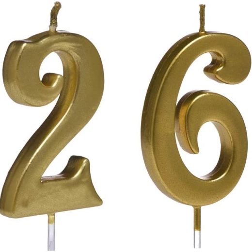 MMJJ Gold 26th Birthday Candles, Number 26 Cake Topper for Birthday Decorations