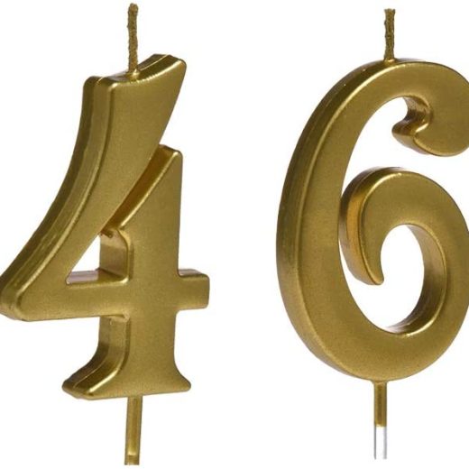 MMJJ Gold 46th Birthday Candles, Number 46 Cake Topper for Birthday Decorations