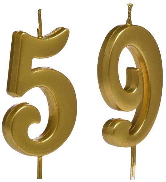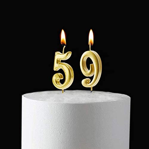 MMJJ Gold 59th Birthday Candles, Number 59 Cake Topper for Birthday Decorations