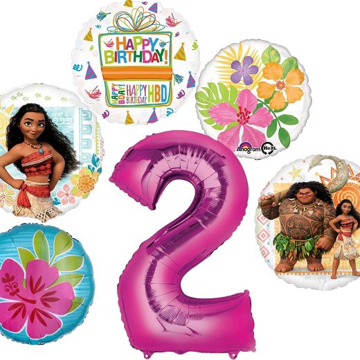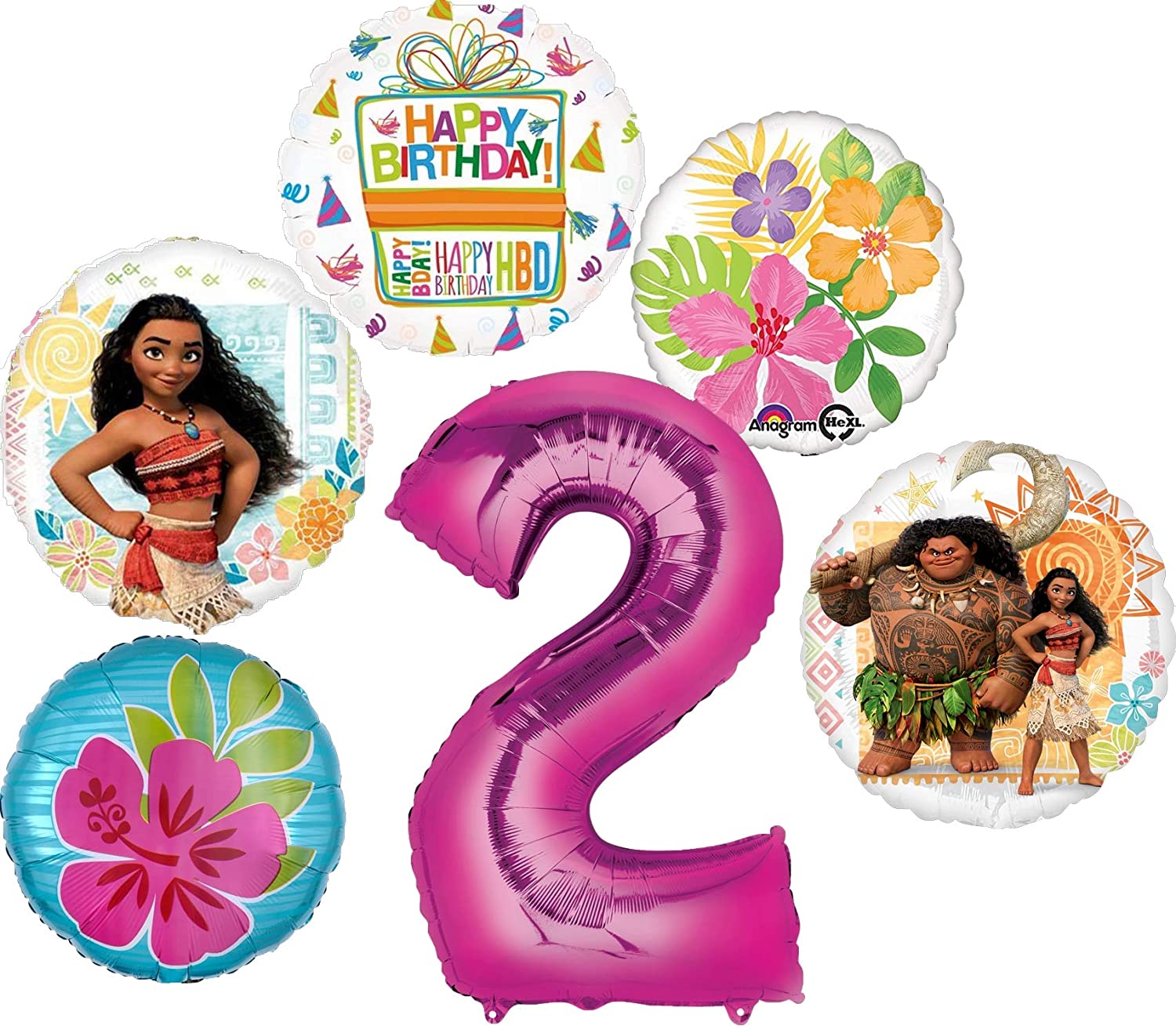 Moana Party Supplies 2nd Birthday Balloon Bouquet Decorations – Pink Number 2