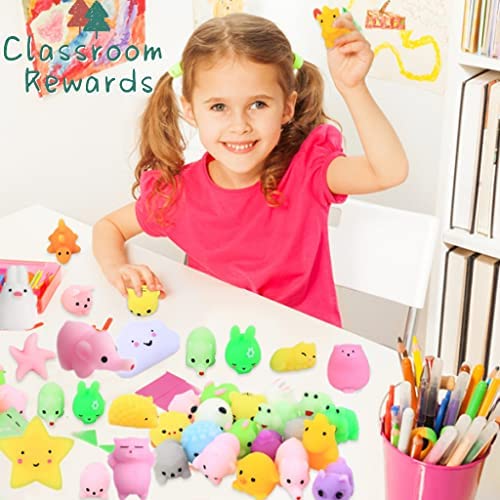 Mochi Squishy Toy 100 Pack, Squishies Kawaii Toys Kids Party Favors, Animal Mochi Stress Relief Toys Bulk Classroom Prizes, Boys & Girls Birthday Party, Valentines Gifts, Goodie Bag Stuffers