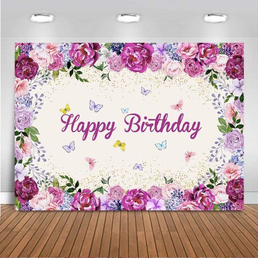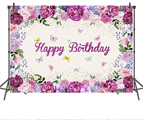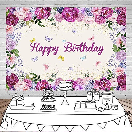 Mocsicka Butterfly Floral Party Backdrop Baby Girls Fairy Princess Happy Birthday Photography Background Vinyl Kids Sweet Cake Table Banner Decor Supplies (7x5ft)