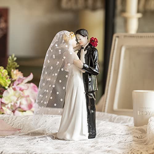 MORDERN AND SWEET DESIGN: Simple but full of love, these mini couple statues symbolize the newlyweds be together forever, surrounded by love and blessing. LIFETIME KEEPSAKE: Made of environmental-friendly and toxic-free resin, the color hardly fade even after decades, and the precious memory will not either. Every time you pick this figurine up, youll be reminded of the sweet memory of your wedding time. SIZE & EASY TO KEEP: 2.2” L x 1.8” W x 6.3” H, this bride and groom figurine can be displayed in your table, closet, cabinet or anywhere you want. MULTIPLE APPLICATION: This rustic cake topper is for weddings, engagement parties, bridal showers, anniversary celebrations. They will make your cake and party stunning and memorable. WONDERFUL GIFT FOR COUPLES: No matter you are searching a gift for a ready-to-marry couple, or a just-married newlyweds, even your friends or parents who are planing their anniversary, these exquisite statues are your perfect choice to express your blessing.