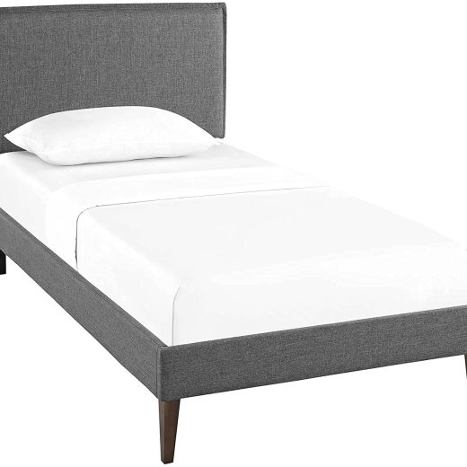 Modway Amaris Upholstered Twin Platform Bed Frame in Gray With Tapered Legs