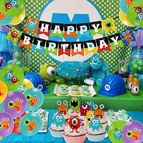 Monster Bash Decorations: Package includes 1 monster happy birthday banner 7.8*6.3 inches, 24 monster bash cupcake toppers with 6 different design, 18 monster bash balloons 12 inches. Original & Unique Design: The cute monster banner was specially designed for kids birthday decor, the lovely monsters and bright colors definitely will light up your party, making your party house filled with adorable monsters and happy atmosphere. Perfect Birthday Supplies: The monster bash party decorations is perfect for boys birthday, 1st birthday celebrations, monster bash themed baby shower, creating a memorable and unforgettable party experience for your kids and friends. Valued Party Pack: This monster bash decoration kit offers everything you need to prepare for your party, birthday banner will take a couple of minutes to assemble, monster balloons can be inflated with air or helium, if you want them float, please use helium. Rest Assured to Order: A friendly customer service stands behind our items, please contact our customer service team if you are not completely satisfied with our decorations.