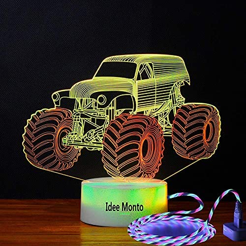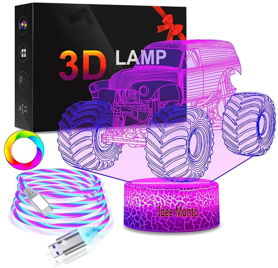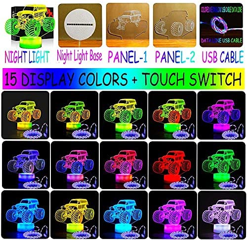 Monster Truck Night Light for Kids 3D Lamp with Smart Touch Features 7 Color & 15 Color Changing Dimmable Monster Truck Gift Can be Used in 1 2 3 4 5 6 7 8 Year Old Boys and Girl Gifts